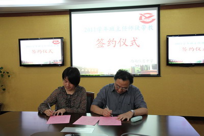签约仪式上师傅、徒弟代表发言。奚玲玲老师总结了自己的带班经验,认为做班主任首要是用心。她说,做好班主任是一个需要多听多问、不断学习的过程。班主任工作内容宽泛,事务繁琐,在人际上海要沟通学生、任课老师、家长三方面的关系。即使难免发怒或伤心,也要控制好自己的情绪,用幽默感和亲切感去感染学生。谢敏老师在认同“用心”做班主任的基础上,还提出总结经验的建议。她认为班主任们要懂得总结与学生交流和沟通的方法,利用好日常生活中的任何机会,包括午会、班会,不断积累班主任工作经验。时代在变,班主任工作必须与时俱进,富有创意。
