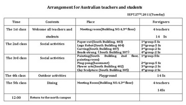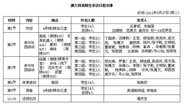 澳大利亚师生来访日程安排