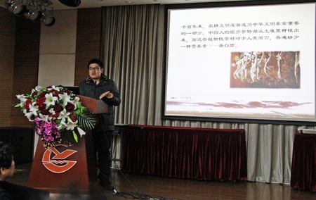 在讲座中,吴飞老师通过对时下流行的纪录片《舌尖上的中国》的内容筛选,结合生物学中的“味觉”这一知识点,为大家剪辑呈现了一部精彩的《舌尖上的生物学》短片,使得他的讲座图文并茂,趣味横生。为了让广大教师能够更好地感受到“味觉”带给我们的美好,吴飞老师还在讲座现场为教师们分发了他事先购买的酸奶豆腐和糖条,整个讲座也因为这个互动掀起了一个小高潮。大家在汲取知识、品尝美食的同时更加领略到了这位青年教师的智慧与体贴。