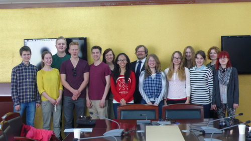 一踏进校门,欧拉瑞中学的学生就惊讶地发现橱窗中他们自己的合影以及学校的大幅照片,而电子屏上显示着“欢迎欧拉瑞中学师生来访”的英文字样。虽然上海这个远东的大城市对它的新客人来说还很陌生,但是芬兰师生仍不禁感到一丝亲切。师生们放下行李,就徜徉在了春意盎然的校园中。芬兰学生靓丽的身影处处引起了好奇,中国学生的第一个问题就是“芬兰人说什么语言”。终于他们在午会课上揭开了神秘的面纱,芬兰老师和学生首先用流利的英语发言,但他们的母语是英语吗?