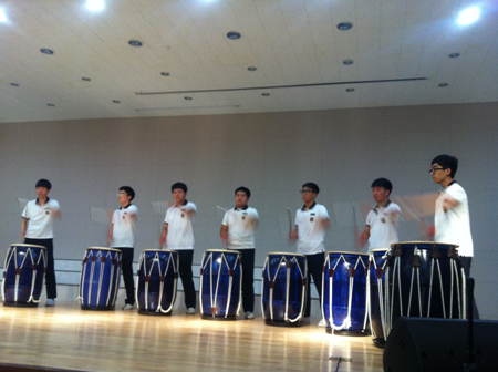 我们来到了首尔大真高级中学。校长和所有同学都十分热情地欢迎我们。欣赏完一场激情澎湃的音乐会之后,我们都充分领略到了他们的多才多艺。一切的开始是如雷鸣般的掌声,说意外也好,惊喜也罢,我们真的看到了一种非凡的热情。虽然总是开着玩笑说很少见到女生,但真的相处下来,我们之间不断的产生了文化的碰撞和火花。我们相互比较着,分享照片,分享视频,分享一切我们所代表的国家,所代表的学校所含有的文化,亦或是知识。即使我们来自两个国家,但终于也是融合在了一起,他们的父母也一样。看到他母亲的第一个场景是拿着伞奔跑着来接我,她就像自己真正的母亲一般,把大部分的伞都给了我,自己却淋着雨,就在那一瞬间,我真正的觉得,这里,很棒。接着,我们便各自见到了我们的Homestay。起初由于语言不通,我们交流不是很通顺,但是,可以从他的眼神中看出,他尽力使我们可以交流。经过一番简短的熟悉以后,我们便前去参观仁四洞等景点。一行浩浩荡荡地前往地铁站,大家都十分和谐。一切都过得很愉快。晚上学校安排的音乐剧表演BIBAP十分有趣,丝毫没有语言障碍。虽然演出结束之后已经很晚了,但Homestay们还是坚持陪我们去南山塔欣赏美丽的夜景。一天过后,大家都熟悉了很多,开始手舞足蹈地来表达自己的意思。一切都很顺利。