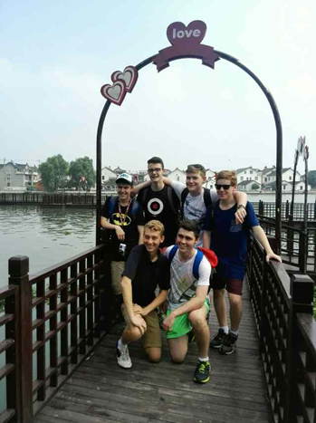 前往周庄的大巴上欢声笑语,不时传来阵阵歌声,虽然语言差异有时会理解偏差,但完全没有隔阂。到了目的地,他们竟然在一大片古色古香小桥流水的周庄里找到了Starbucks,中西方文化如此的融合堪称完美。大老远来到周庄他们还是决定吃点当地特色,带着小澳们围坐在大圆桌旁拿着筷子夹蹄髈,真是其乐融融;回程的路上更加欢乐了,一车人丝毫没有疲惫,这一次新奇的体验不仅让中国学生学会了有用的sentences,而且澳洲师生也学些中文,在彼此的交流中共同进步,情谊温度也慢慢地上升!