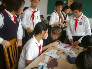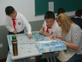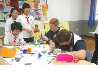 丰富多彩的社团活动,是东校区的一大特色。今天上午,许多社团都变成了开放课堂,澳洲的学生们都饶有兴致地融入到不同的社团活动中,与西位的同学们一起动手,共同分享各个活动的快乐。在篆刻社团,几个同学耐心地用英语指导澳洲伙伴刻一些中国元素的图案,手把手地教他们正确使用刻刀;由于圣埃德蒙德学院没有开设乐高机器人课程,他们一进机器人社团就被吸引住了,西位的机器人能手们立刻教他们制作一些简单的模型,玩得不亦乐乎;中国传统的剪纸艺术对澳洲学生也充满了吸引力,他们在剪纸社同学的帮助下,一板一眼地认真学习剪纸,花了半个多小时完成的作品,得到了指导老师和同学们的一致夸奖,甭提多高兴了;澳洲的老师们也兴致勃勃地来到拼图社,和同学们亲切交流,一起拼图,简直像老朋友一样,其乐融融……