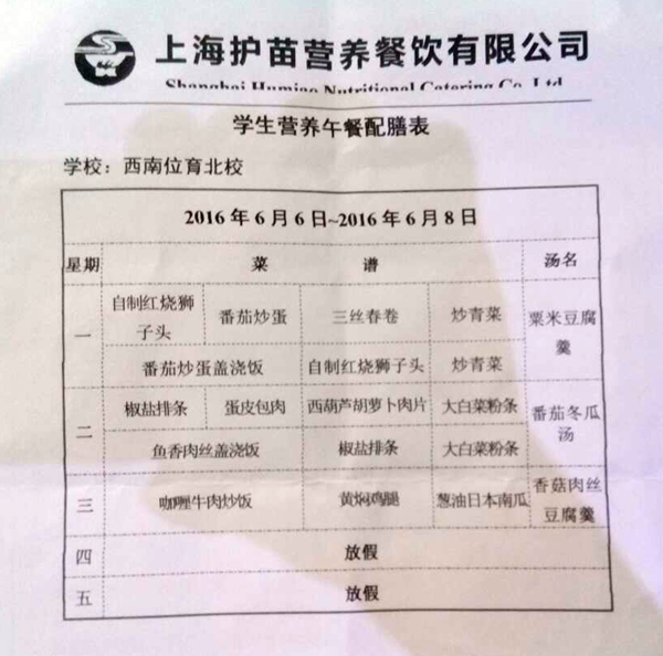 北校区6月6日到6月8日菜单