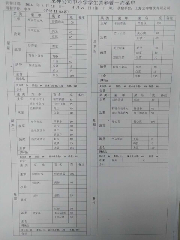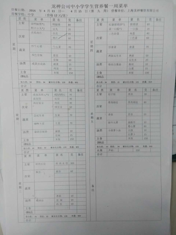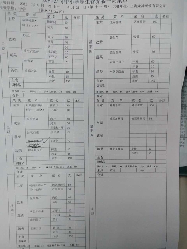 东校区4月菜单