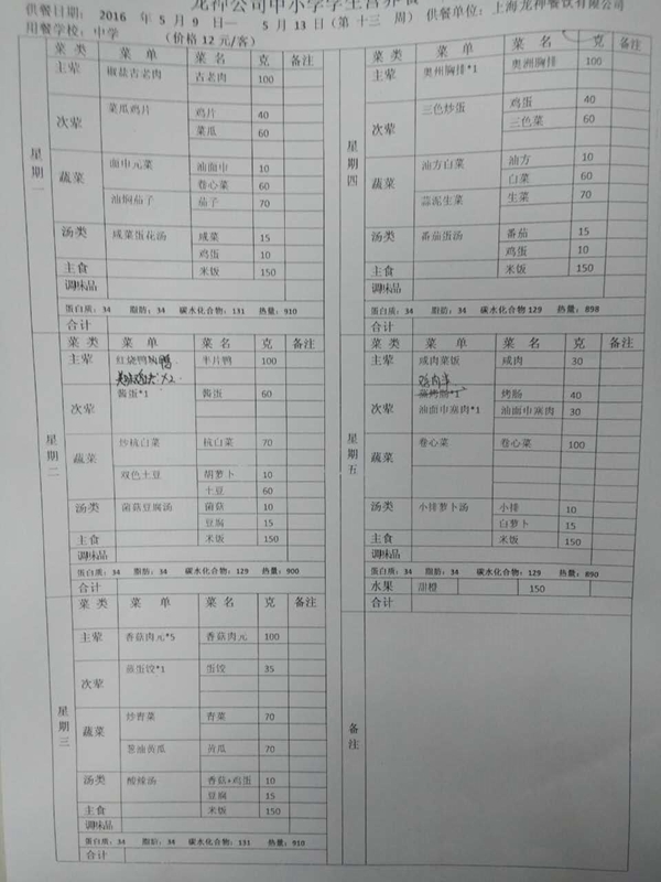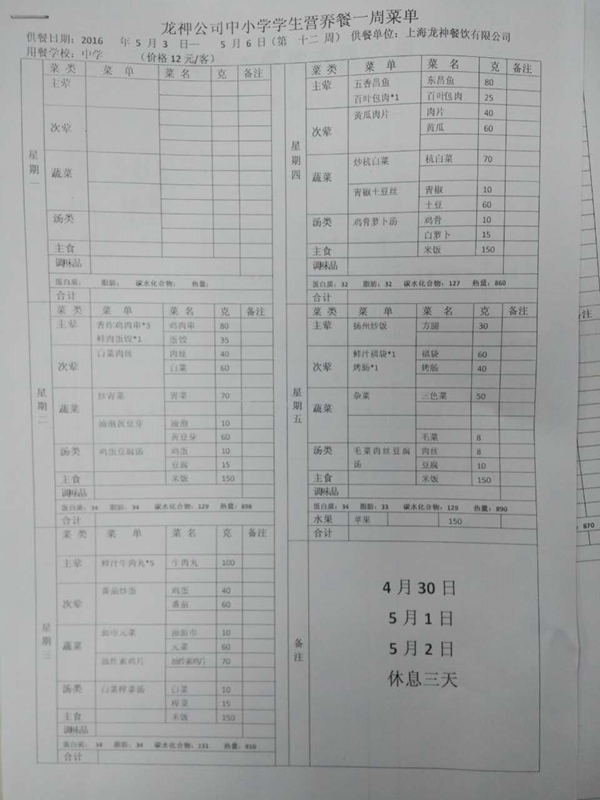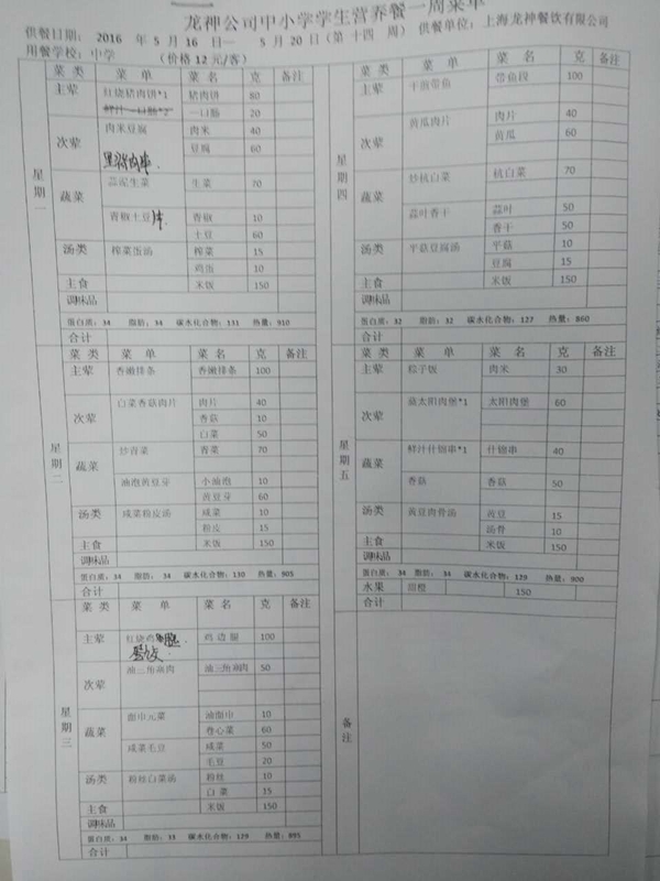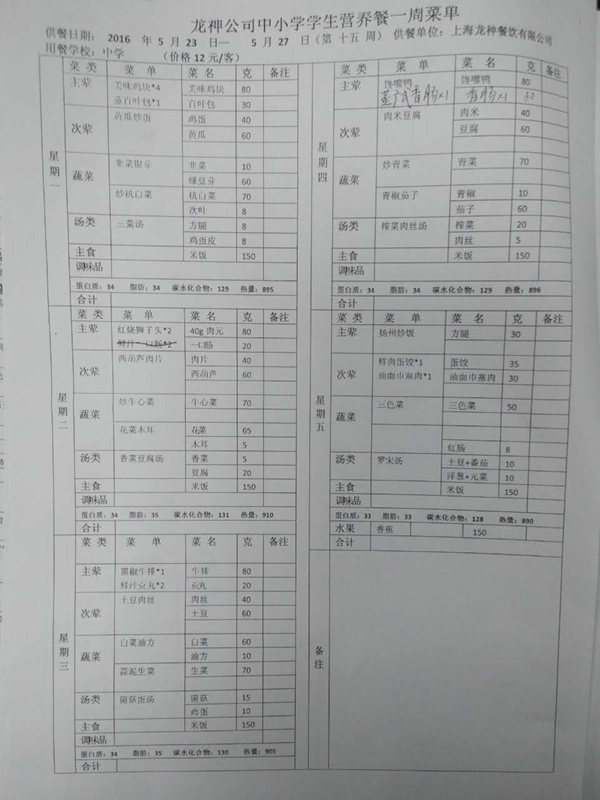 东校区5月菜单
