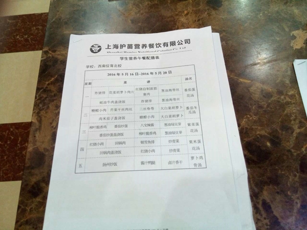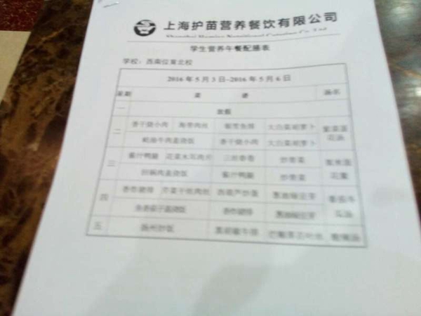 北校区5月菜单