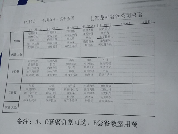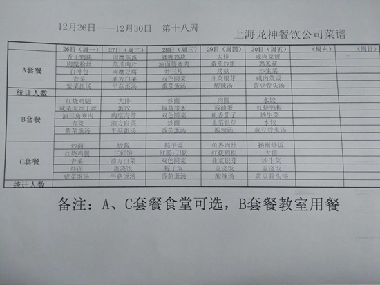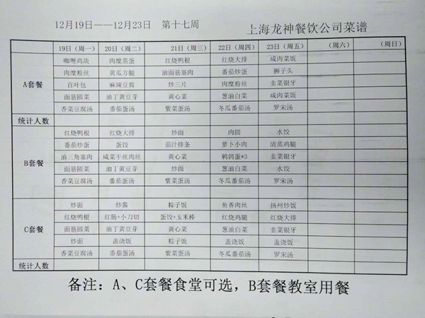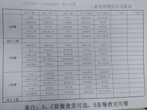 东校区12月菜单