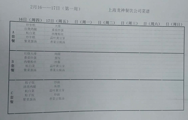 东校区第1周菜单