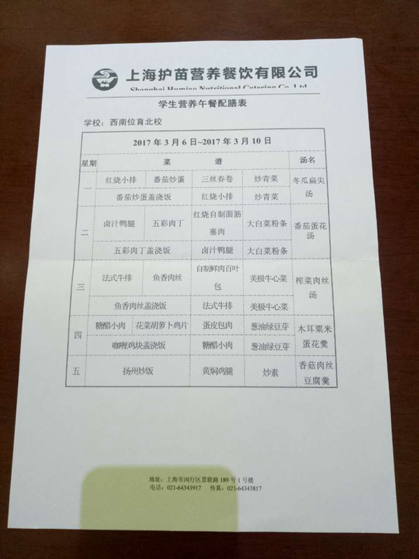 北校区第4周菜单