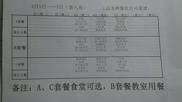 东校区第8周菜单