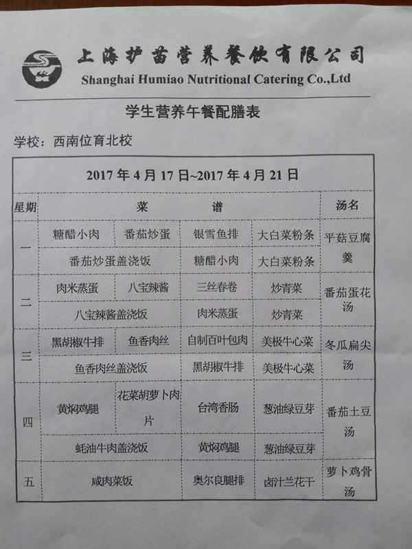 北校区第10周菜单