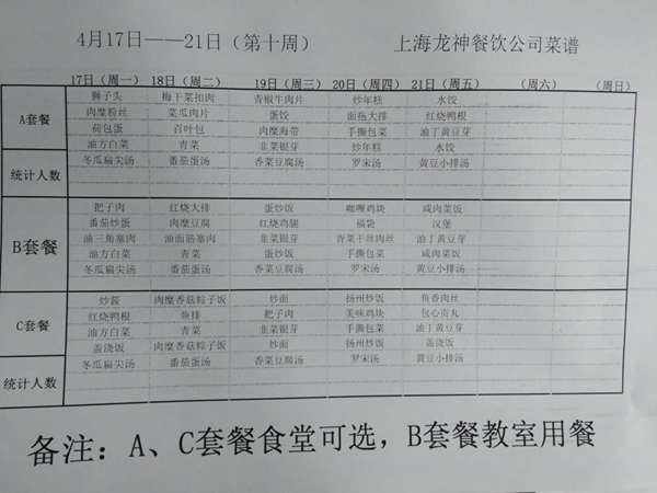 东校区第10周菜单