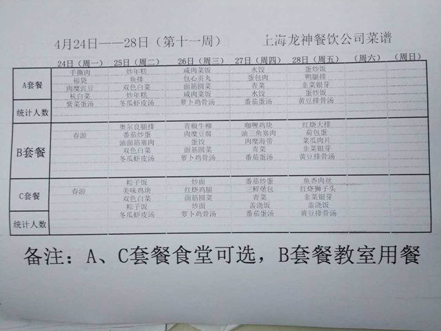 东校区第11周菜单