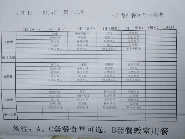 东校区第12周菜单