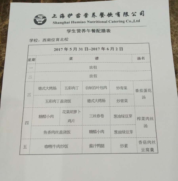 北校区第16周菜单