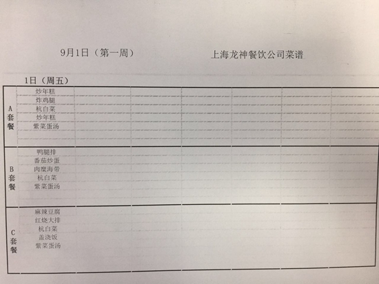 东校区第1周菜单