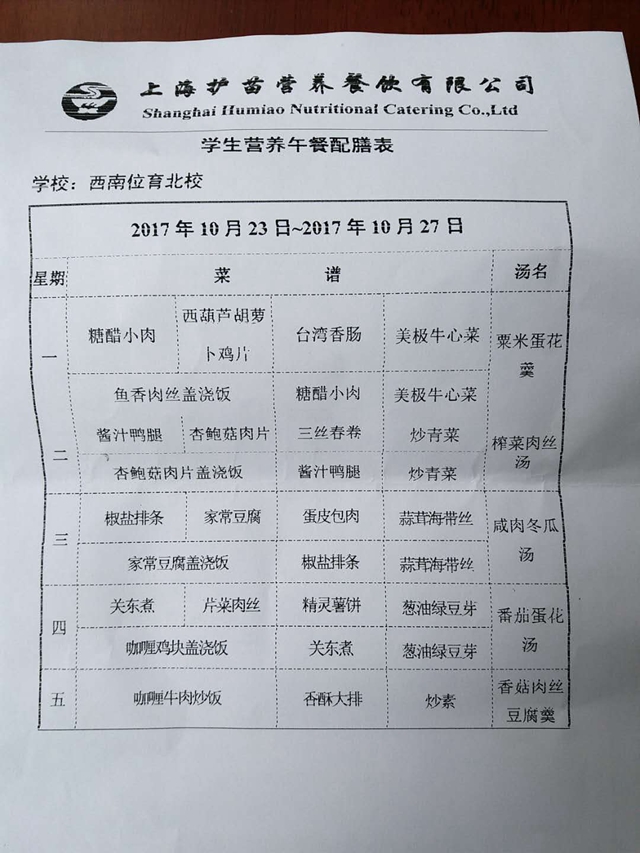 北校区第9周菜单