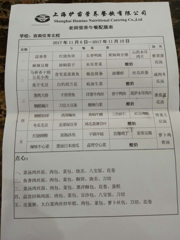 北校区第11周菜单
