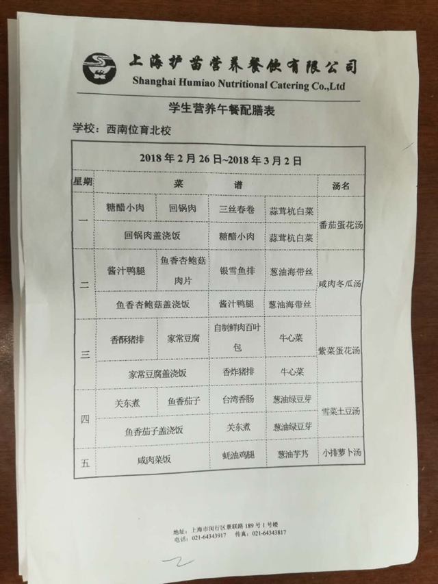 北校区第2周菜单