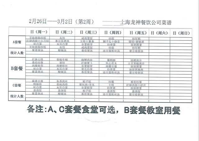 东校区第2周菜单