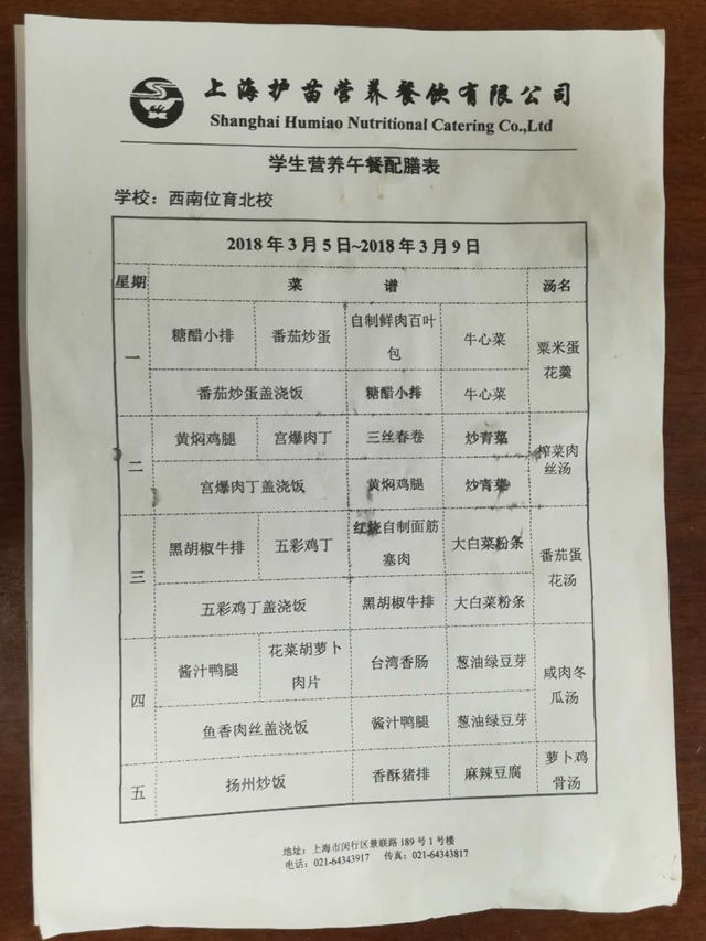 北校区第3周菜单