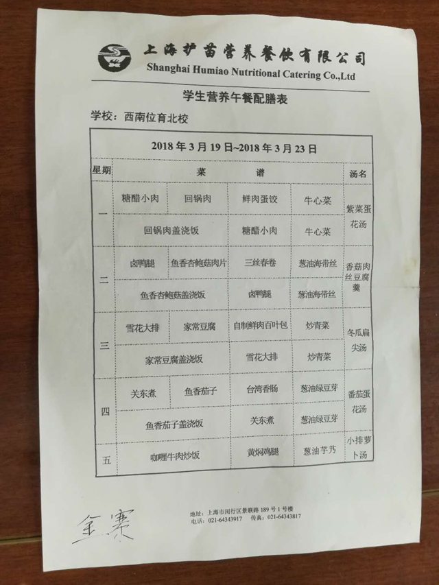 北校区第5周菜单