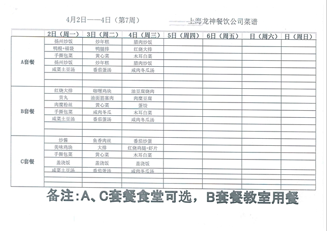 东校区第7周菜单