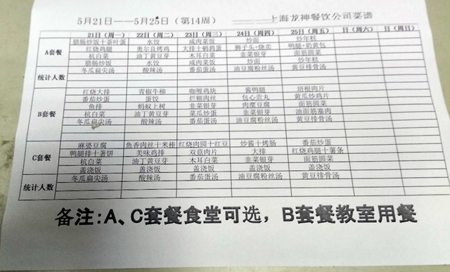 东校区第14周菜单
