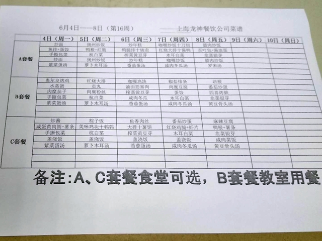 东校区第16周菜单