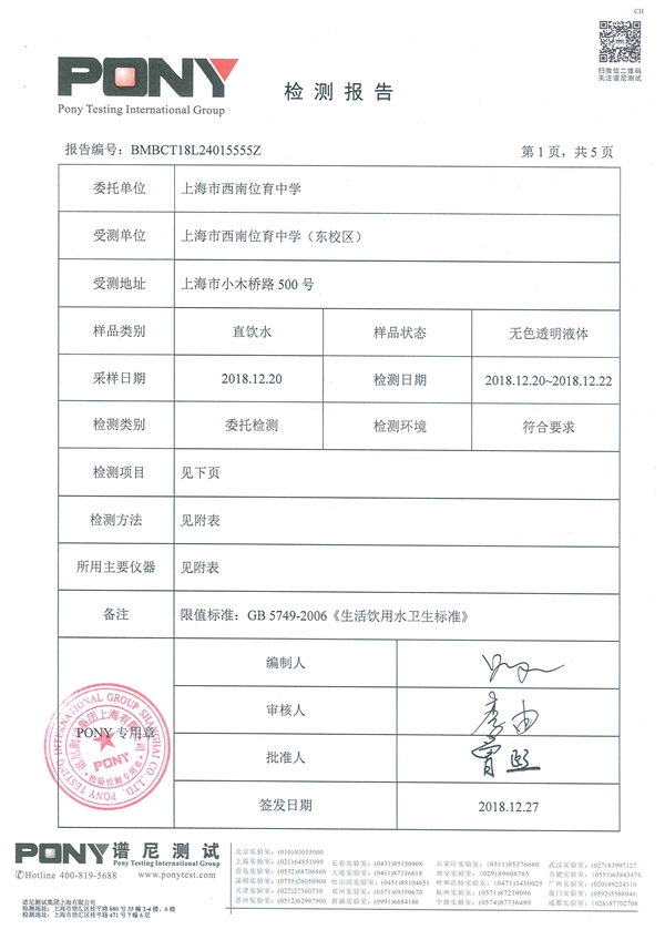 东校区检测报告2018年12月
