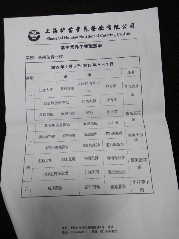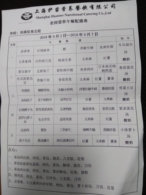北校区第1周菜单