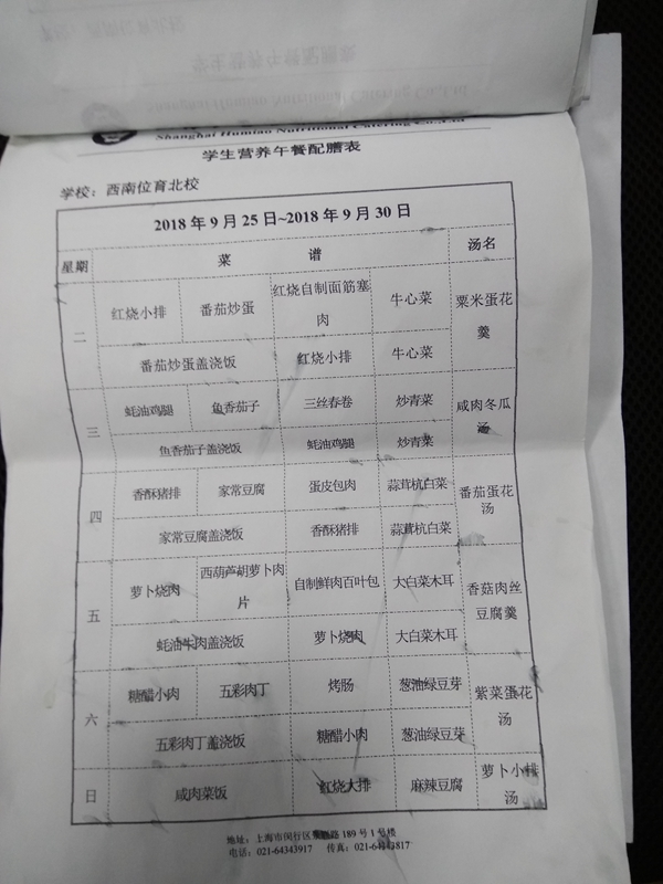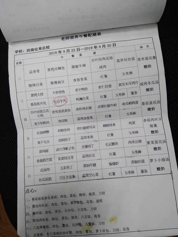 北校区第5周菜单