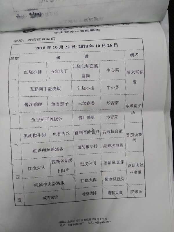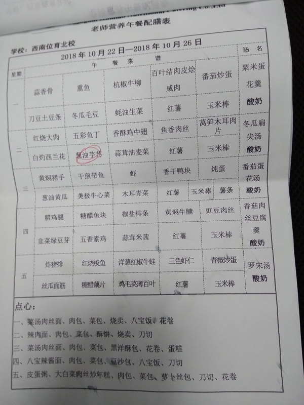 北校区第8周菜单