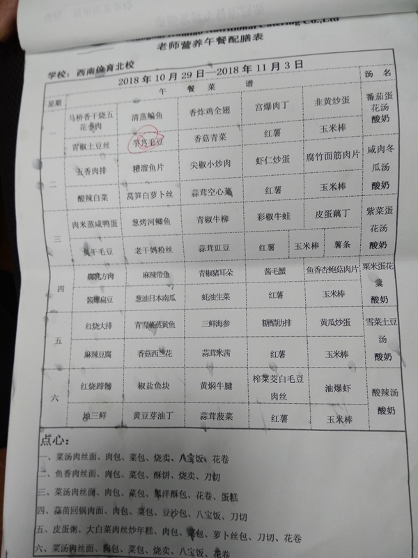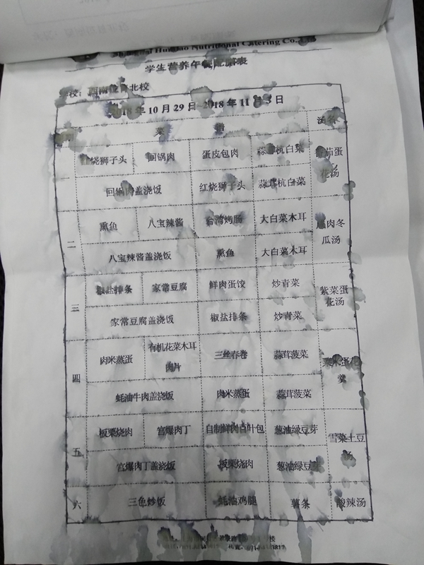 北校区第9周菜单