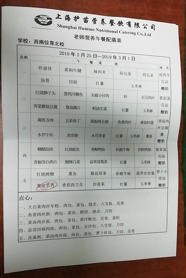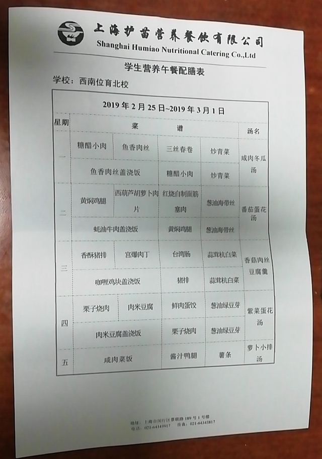 北校区第2周菜单