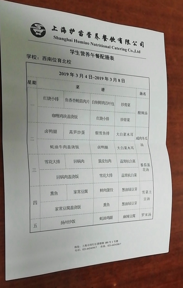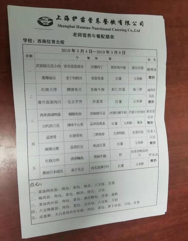 北校区第3周菜单