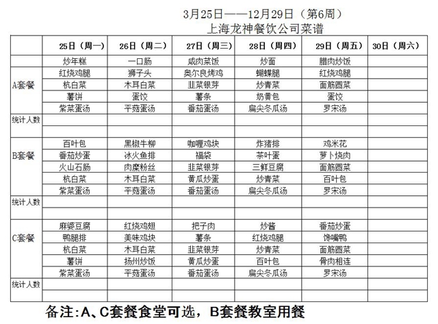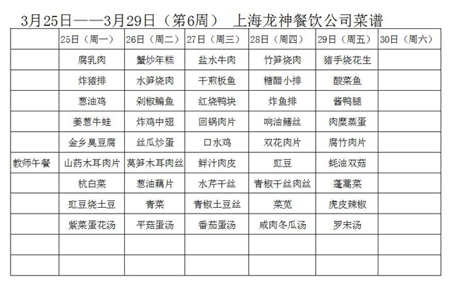 东校区第6周菜单