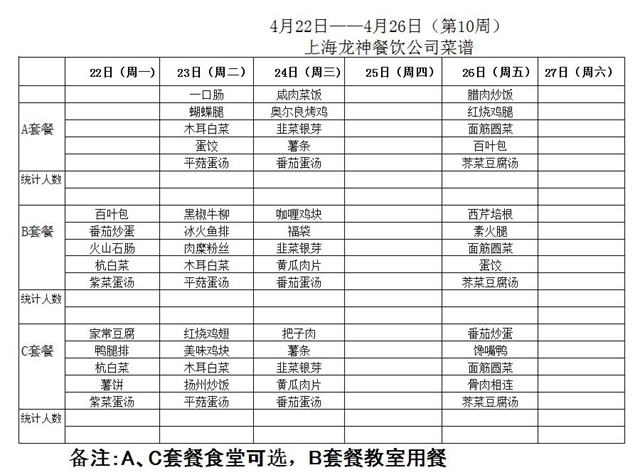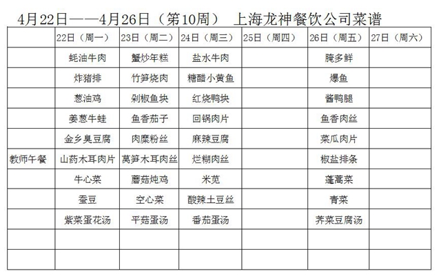 东校区第10周菜单