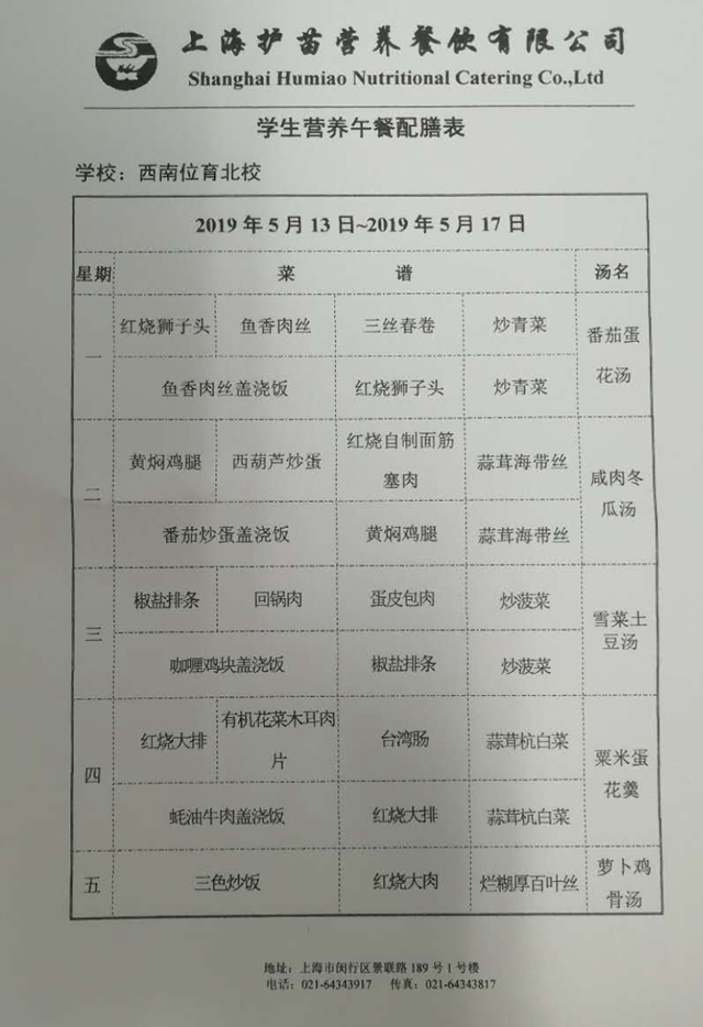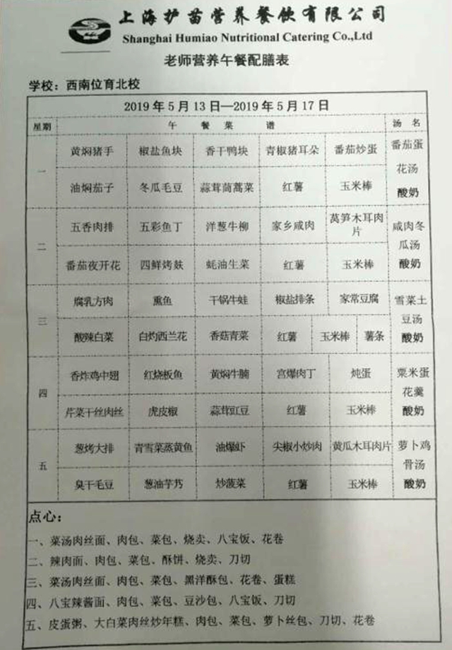 北校区第13周菜单