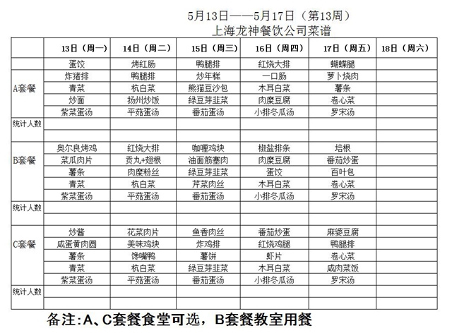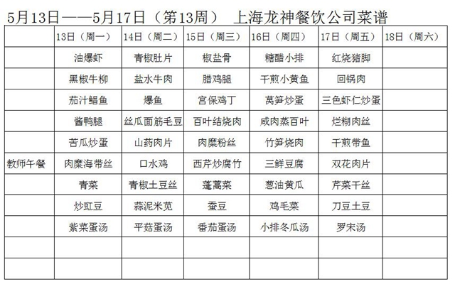 东校区第13周菜单