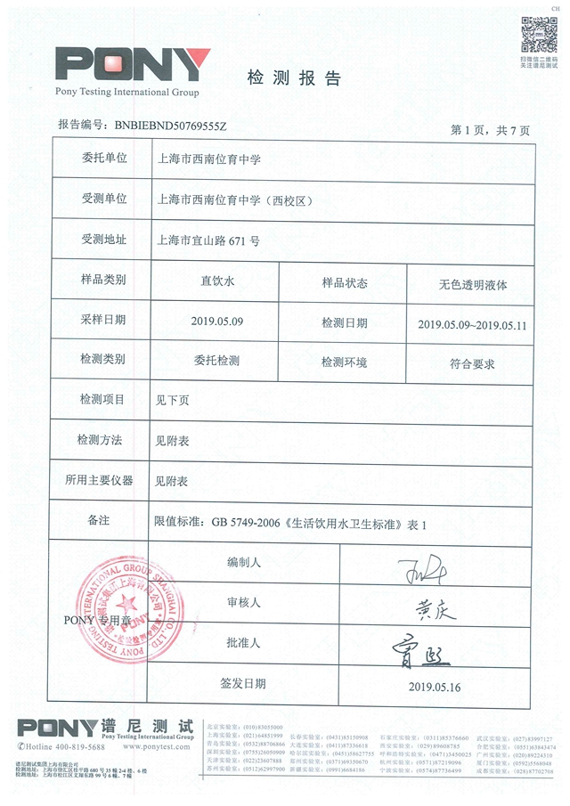 西校区检测报告2019年5月