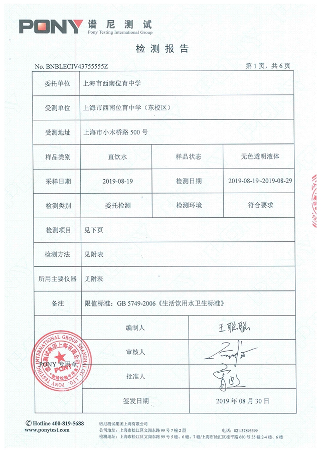 东校区检测报告2019年8月