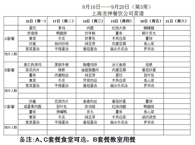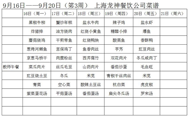 东校区第3周菜单