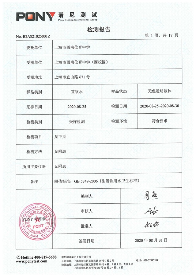 西校区检测报告2020年8月