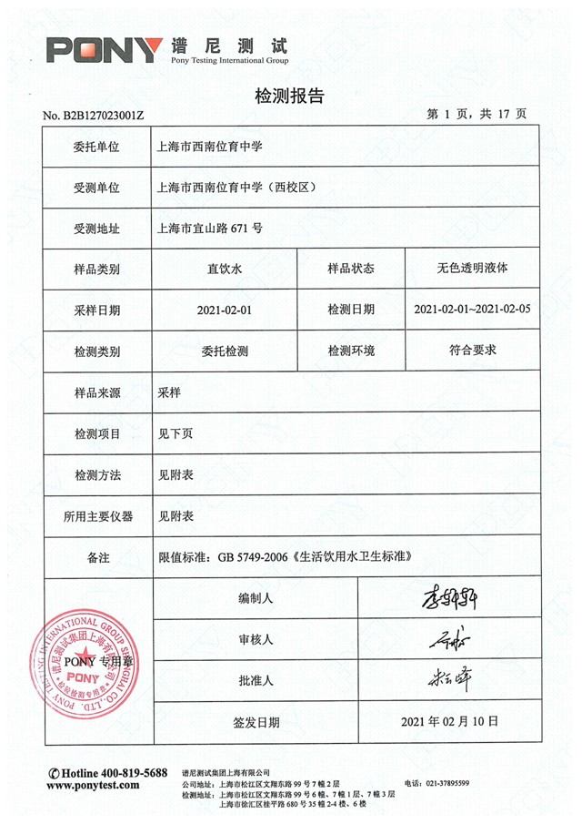 西校区检测报告2021年2月