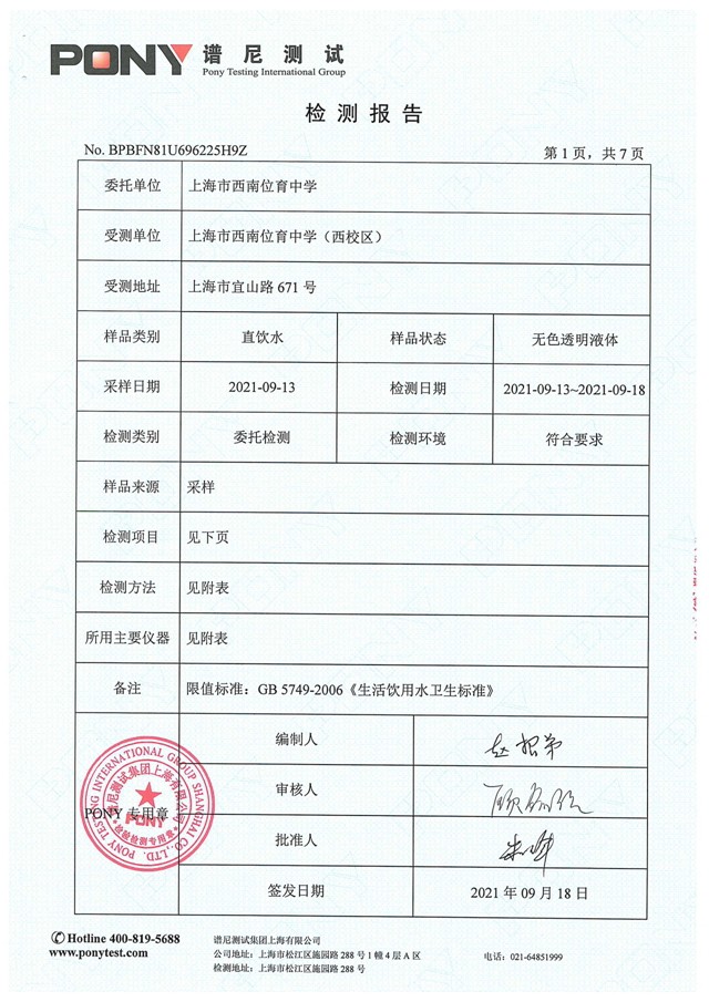 西校区检测报告2021年9月