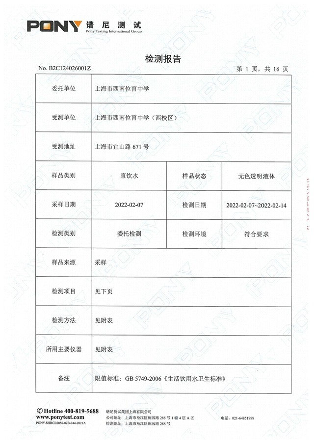 西校区检测报告2022年2月